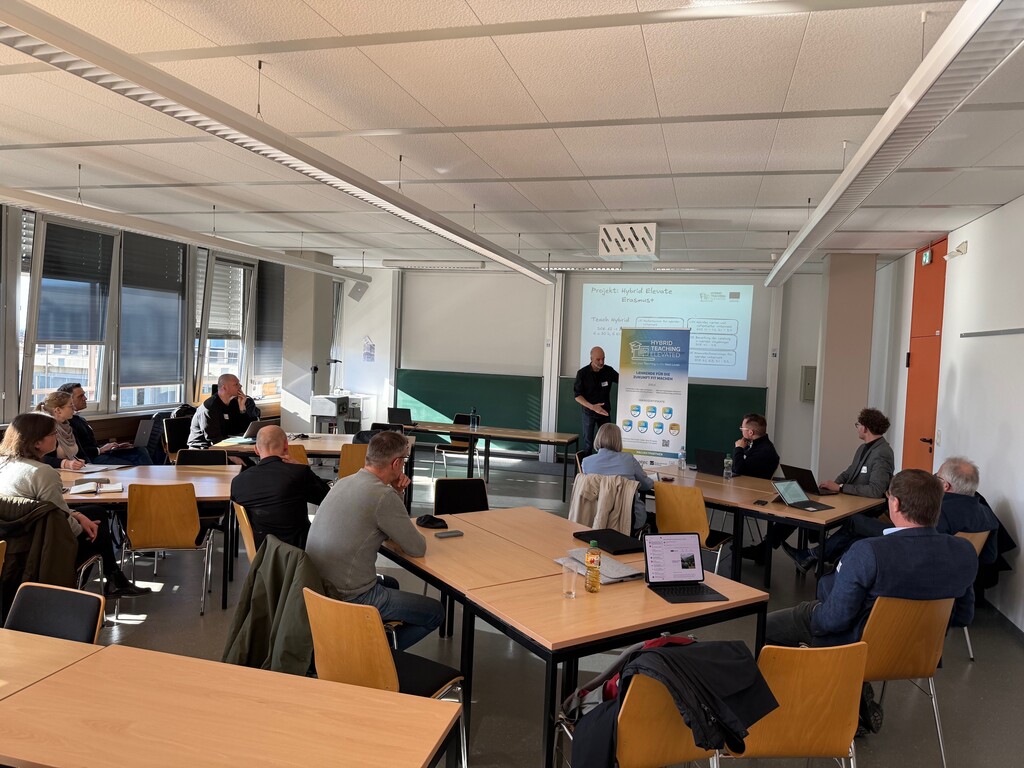 In the first days of October 2025, the four partners entities gathered in Vilnius, Lithuania, hosted by Vilnius University, for the final project meeting. During the event, each partner presented the training modules developed throughout the project. The session was open to the teaching and training commmunity of all partner organisatins, who joined both on-site and online. Participants had the opportunity to experience the modules firsthand and explore how these innovative tools can enhance hybrid and blended learning in vocational education. The meeting concluded with a discussion on the next steps to ensure that the outcomes of Hybrid Teaching Elevated continue to support educators and trainers across Europe.