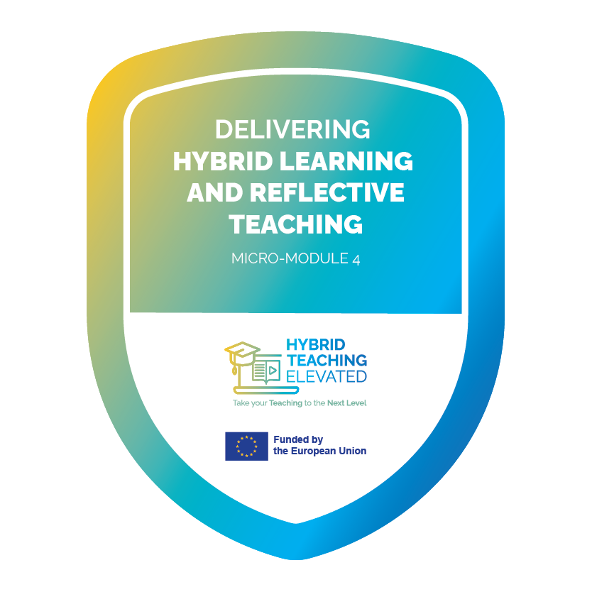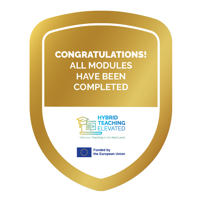 Each of the micro-modules awards a digital badge upon successful completion. Participants who complete all six Hybrid Teaching micro-modules earn a prestigious Golden Badge, recognizing their full achievement in the program. Badges are issued by the training entity in whisch training is attended.